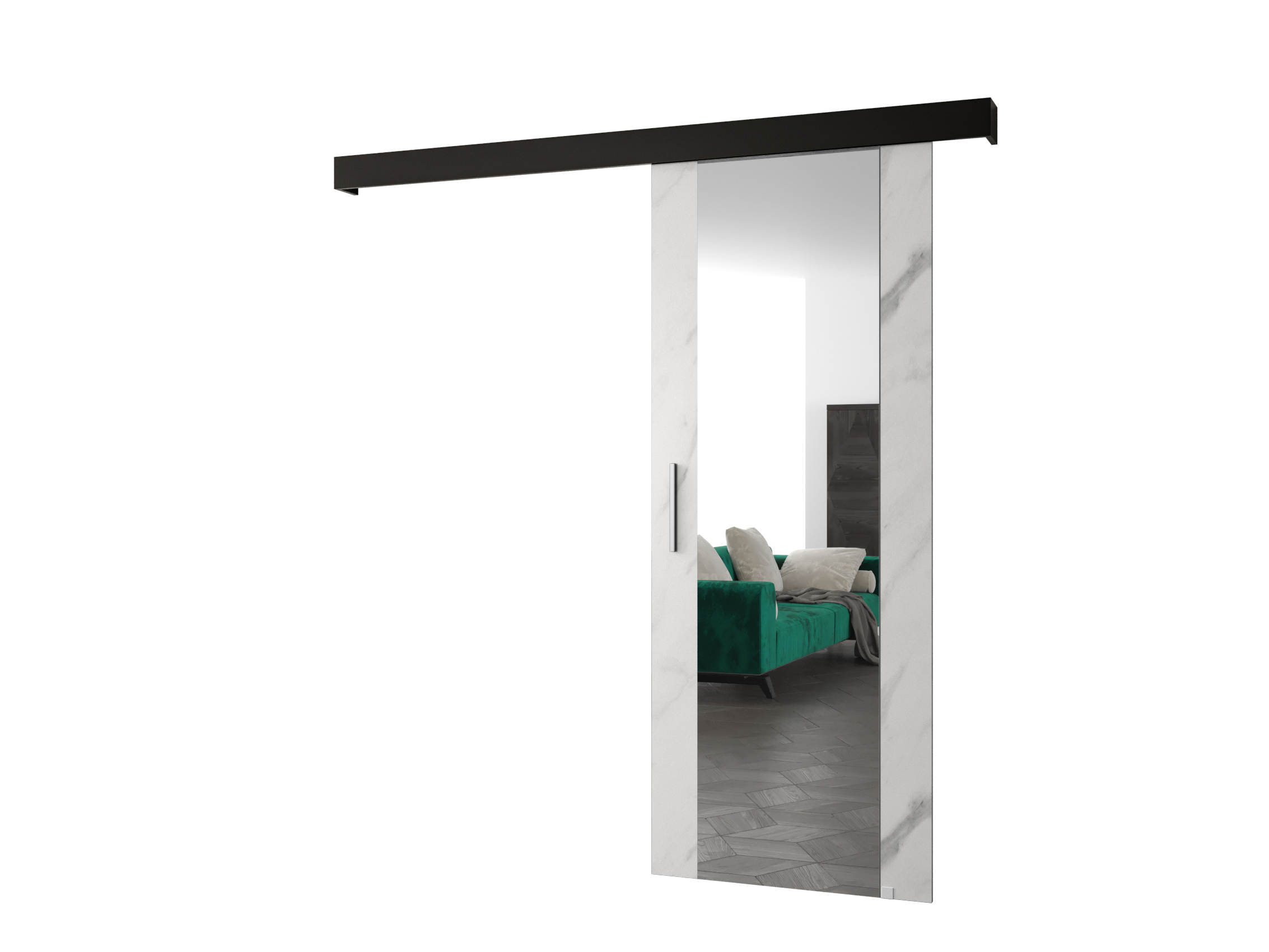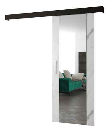 Posuvné dvere 90 cm Sharlene II (mramor biely + čierna matná + strieborná) (so zrkadlom)