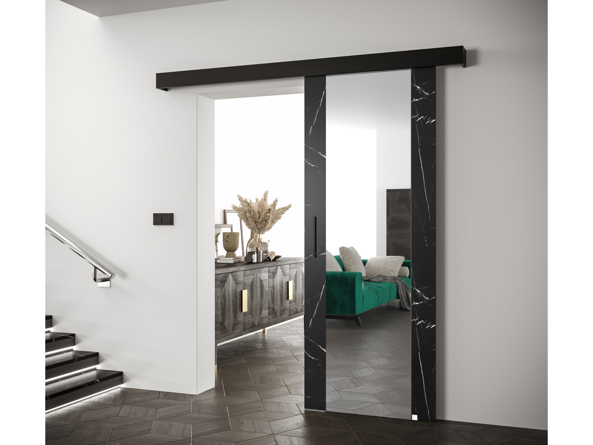 Posuvné dvere 90 cm Sharlene II (mramor čierny + čierna matná + čierna) (so zrkadlom)