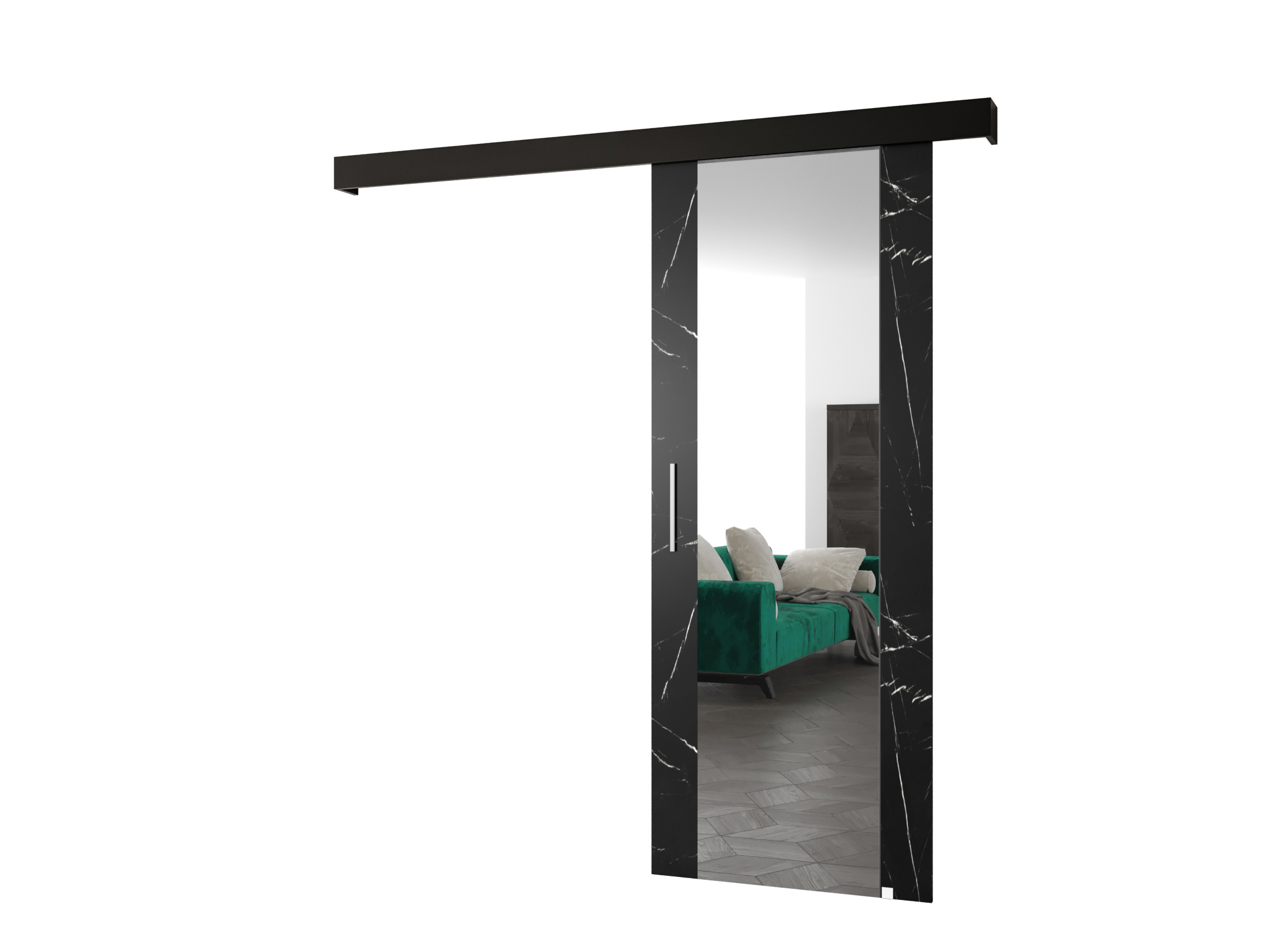 Posuvné dvere 90 cm Sharlene II (mramor čierny + čierna matná + strieborná) (so zrkadlom)
