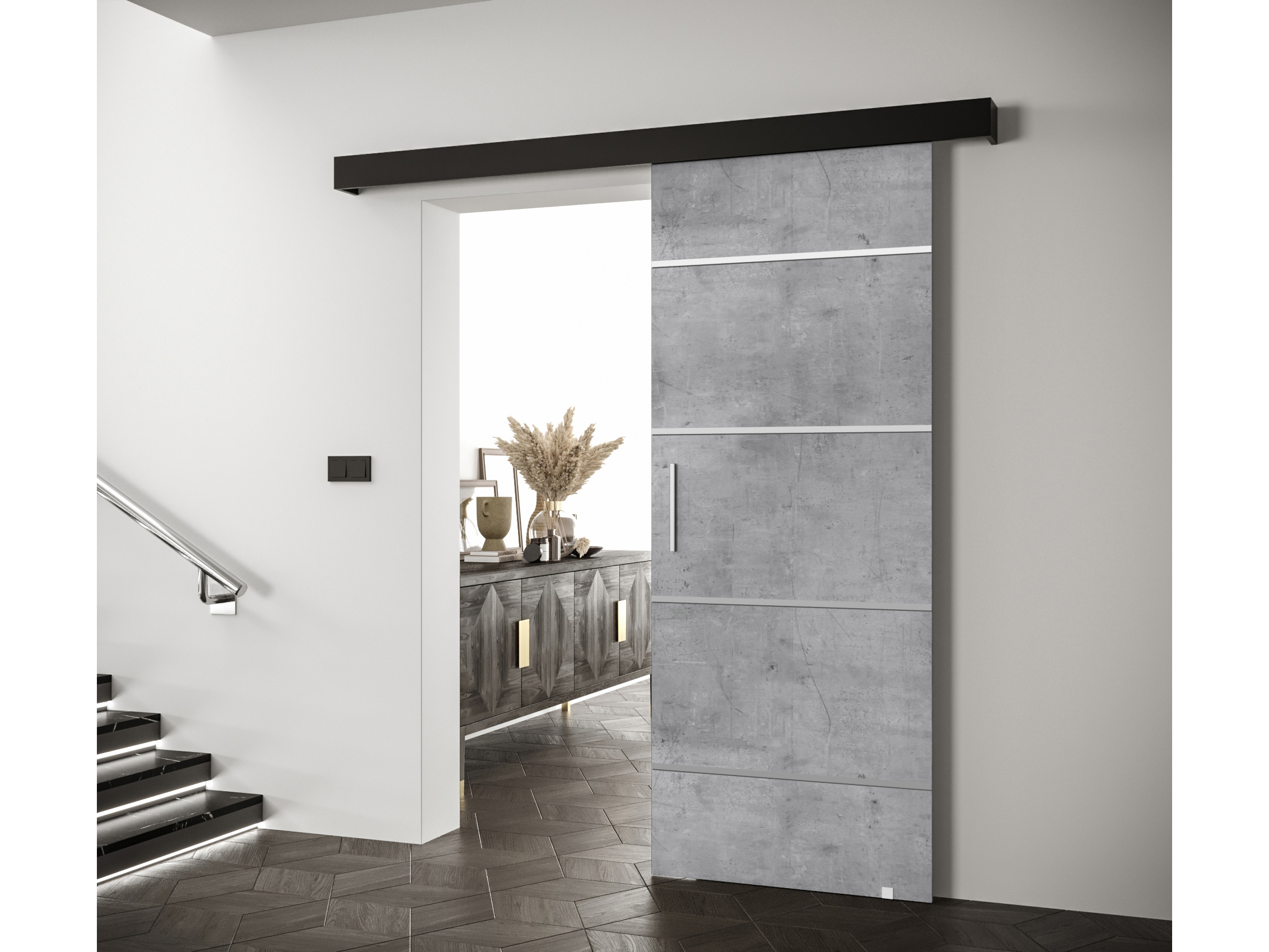 Posuvné dvere 90 cm Sharlene IV (betón + čierna matná + strieborná)