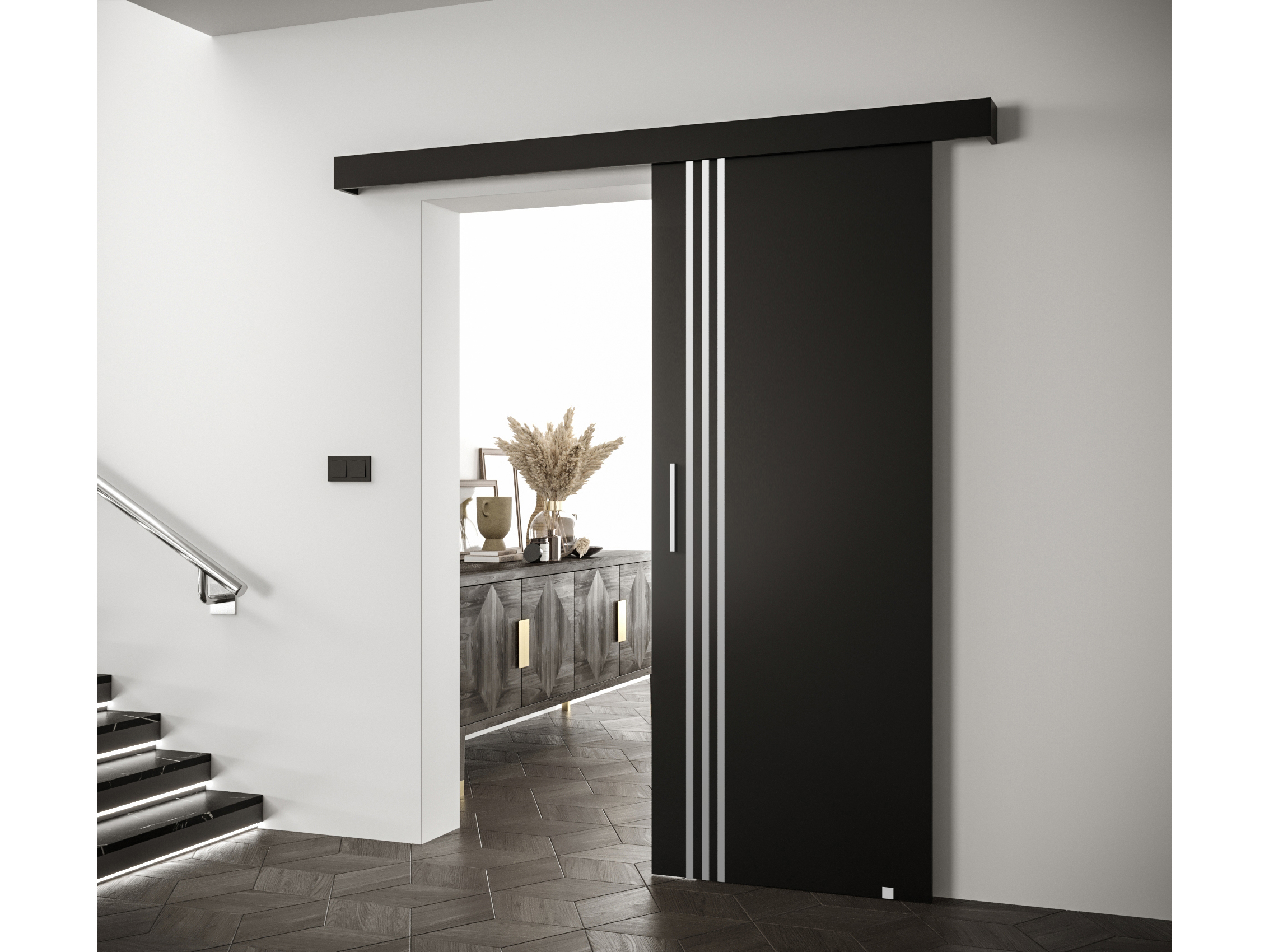 Posuvné dvere 90 cm Sharlene VI (čierna matná + čierna matná + strieborná)