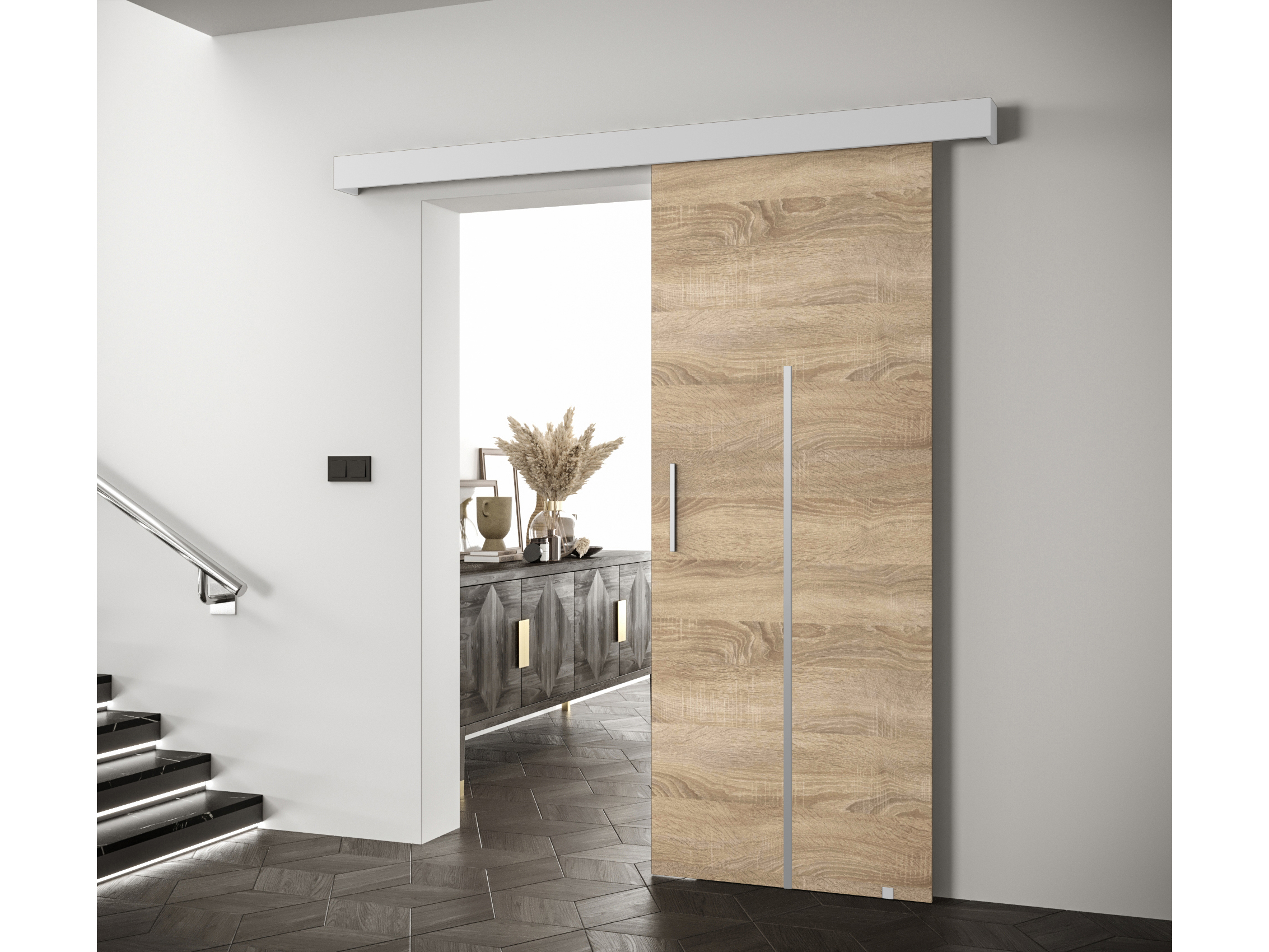 Posuvné dvere 90 cm Sharlene X (dub sonoma + biela matná + strieborná)