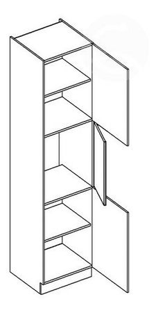 Potravinová kuchynská skriňa s tromi dvierkami a poličkami vo vnútri. Vyobrazená skriňa je s pravým otváraním dvierok.