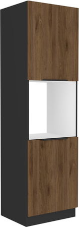 - Potravinová kuchynská skrinka na rúru Manana 60 DP 210 2F (korpus: čierna matná + front: orech okapi)