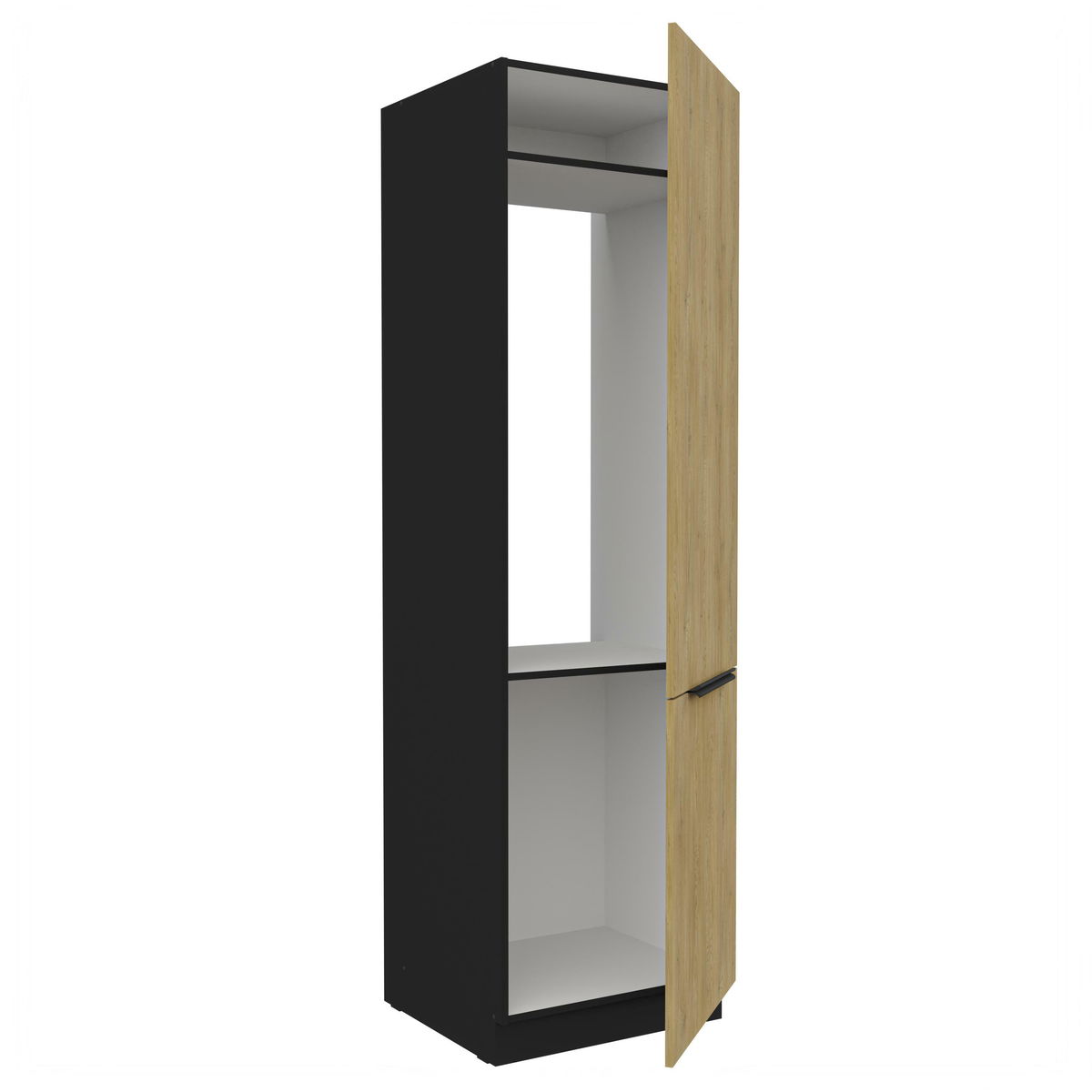 Potravinová vstavaná skriňa na chladničku Carminia 60 LO-210 2F (dub cremona + čierna)