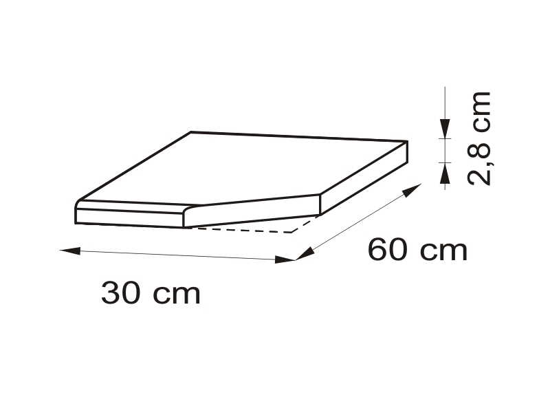 Pracovná doska k rohovej kuchynskej skrinke pravej NIKA. Doska má z prednej strany oblou hranu, bočné hrany sú upravené olepením hranovacia páskou v rovnakej farbe. Bočné hrany nemožno upraviť hliníkovou ukončovacie lištou.