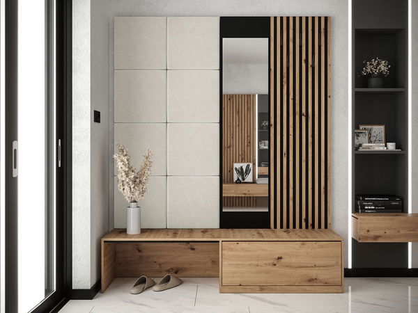Predsieň Anrolat I (dub artisan + čierna + béžová) (so zrkadlom)