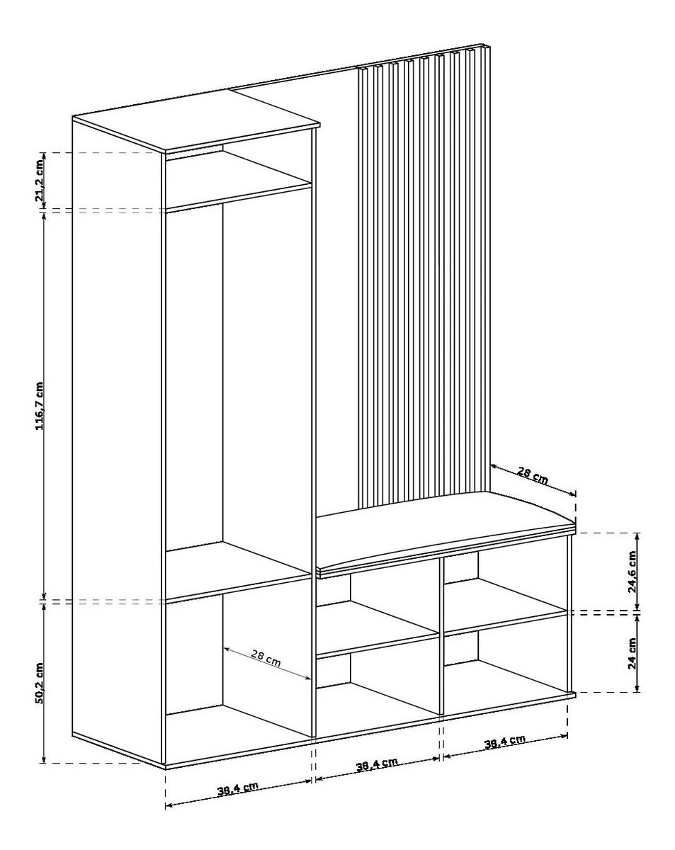 ZobraziťPredsieňová zostava Claudi 22 (dub artisan) výška 195 cm, šírka 128,5 cm a hĺbka 30 cm. Ide o moderný kúsok nábytku so zrkadlom v svetlej farbe Artisan, ktorý sa perfektne hodí k novej kolekcii Claudi. Tento nábytok je nielen estetický, ale aj veľmi funkčný. Má pohodlné police na topánky, dve zásuvky, do ktorých môžete uložiť drobné veci ako čiapky alebo rukavice. Nad skriňami sa nachádza priestranná šatníková skriňa na vešanie oblečenia. Skriňa má čalúnený sedák v čiernej farbe a tri kovové vešiaky, na ktoré môžete zavesiť až šesť šiat individuálne. Celkový dizajn a funkčnosť robia z tejto šatníkovej skrine ideálne riešenie pre vašu predsieň.