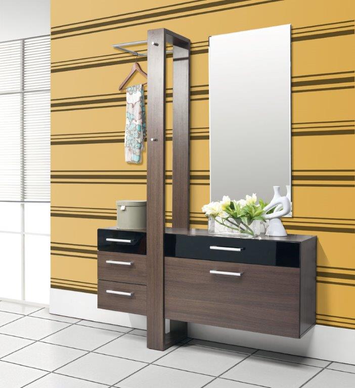 Jednoduchá no moderná predsieň, ktorá sa svojimi rozmermi hodí najmä do menších priestorov. Je vyrobená z laminovanej DTD v nádhernej farbe dreva rijeka tmavá, ktorá je doplnená o čierne zásuvky. Na nosnej konštrukcii sú umiestnené vešiaky a zásuvky s botníkom. Hrany sú ukončené ABS úpravou, ktorá zvyšuje odolnosť voči mechanickému poškodeniu, udržuje farebnú stálosť a odolnosť proti vlhkosti.
