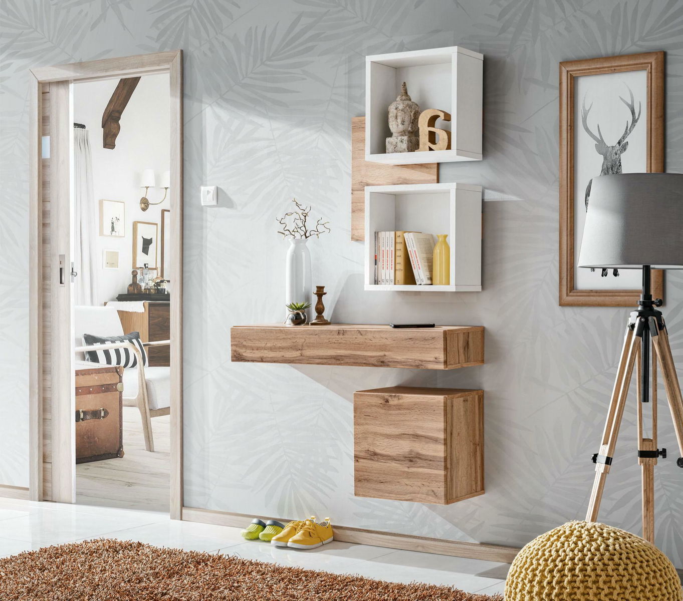 Predsieň Enderly 1 v kombinácii dub wotan a biela ponúka praktické a štýlové riešenie pre vstupný priestor. Skladá sa z troch prvkov: poličky Elaine 20 WTW EY typ 04, zásuvky Elaine 20 WTW EY typ 05 a poličky Elaine 20 WTW EY typ 06. Tieto komponenty poskytujú dostatok úložného priestoru na obuv, doplnky a ďalšie nevyhnutnosti, čím zabezpečujú organizovaný a esteticky príjemný vstup do vášho domova.