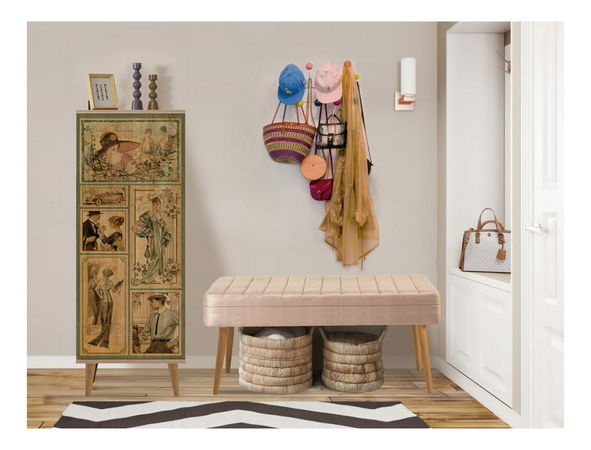 hrúbka: 18 mm, drevené nohy, skrinka na topánky: šírka: 50 cm, výška: 135 cm, hĺbka: 38 cm, (1 kus) veľkosť lavice: šírka: 105 cm, výška: 50 cm, hĺbka: 40 cm