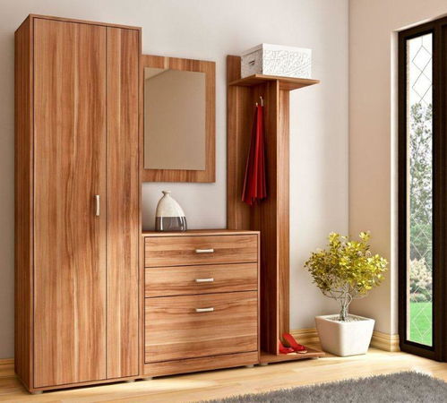 Predsieň Konfort obsahuje šatníkovú skriňu s poličkou, botník s dvoma zásuvkami, zrkadlo a obojstraný vešiakový panel.