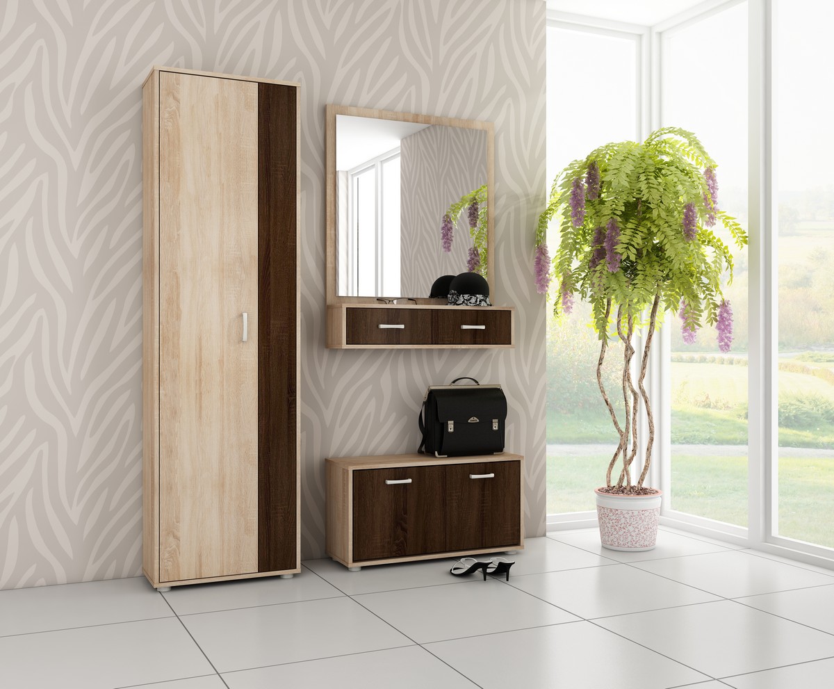 Predsieň Porth Sonoma svetlá + tmavá je funkčné a moderné riešenie pre vašu domácnosť. S výškou 190 cm a hĺbkou 31 cm poskytuje dostatok úložného priestoru pre vaše veci. Kombinácia drevotriesky v odtieňoch Dub Sonoma svetlá a Dub Sonoma tmavá dodáva predsiene jedinečný vzhľad. Na hornom paneli poskytuje 4 police, ktoré sú ideálne na umiestnenie dekoračných predmetov alebo odkladanie kľúčov. Na spodnej časti sa nachádzajú 2 zásuvky a priestranná skriňa so závesnou tyčou, ktorá poskytuje dostatok miesta pre oblečenie a obuv. Predsieň Porth Sonoma svetlá + tmavá je skvelým doplnkom vašej domácnosti, ktorý zlepší organizáciu a vizuálnu estetiku vašej vstupnej časti.