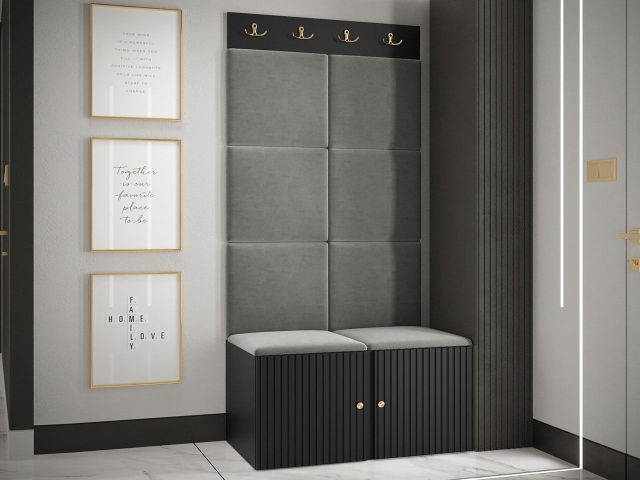 ZobraziťPredsieň Tewarota Slim IV s botníkom, vešiakmi a čalúnenými panelmi je funkčným a elegantným riešením na uloženie oblečenia a obuvi. Miesto na topánky sa nachádza v spodnej časti nábytku a je vybavené dvierkami, za ktorými sa ukrývajú poličky, ktoré poskytujú ďalší základ pre vaše veci. Frézované fronty tohto modelu dodávajú hale nevšedný charakter. Vešiaky v hornej časti predsiene umožňujú pohodlné uloženie vrchného oblečenia, ako sú kabáty alebo bundy. Čalúnené panely plnia dekoratívnu funkciu, ale zároveň chránia steny pred nečistotami a poškodením. Navyše sú aj ideálnym miestom na sedenie, ktoré vám uľahčí obúvanie či prebaľovanie. Takáto predsieň vám umožňuje usporiadať priestor a poskytuje štýlový vzhľad miestnosti.