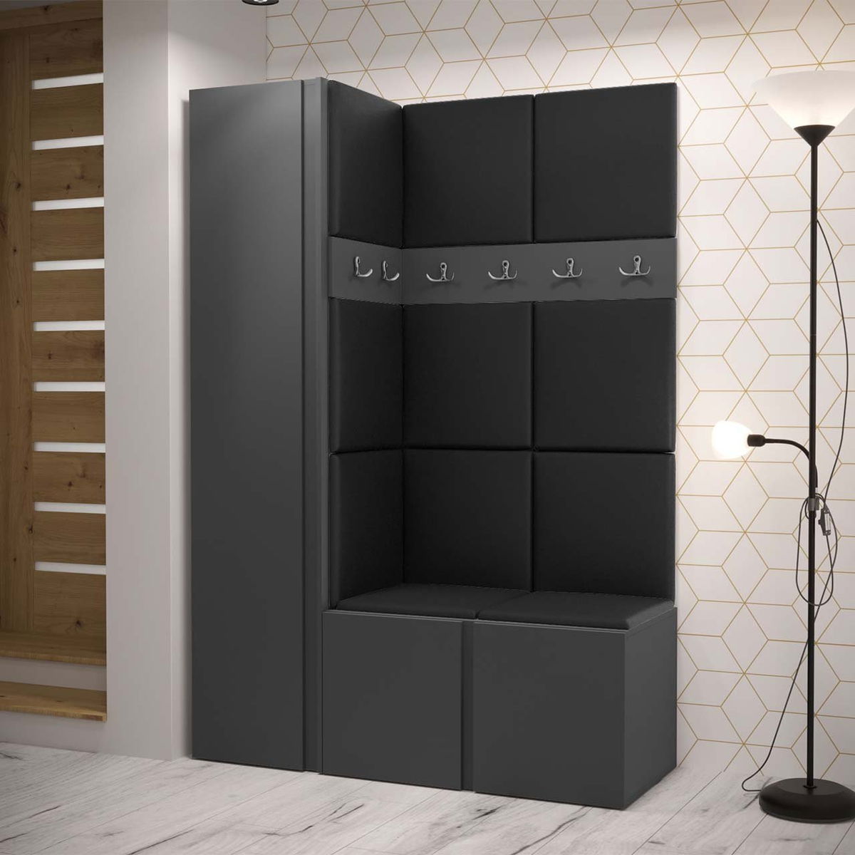 Šatník: šírka: 40 cm, výška: 186 cm, hĺbka: 46 cm, Skrinka na topánky: šírka: 84 cm, výška: 42 cm, hĺbka: 46 cm, Vešiak na šaty 84: šírka: 84 cm, výška: 16 cm, hĺbka: 4,6 cm, Vešiak na šaty 42: šírka: 42 cm, výška: 16 cm, hĺbka: 4,6 cm, Čalúnený panel Pag 42x42x11: šírka: 42 cm, výška: 42 cm, hĺbka: 4 cm