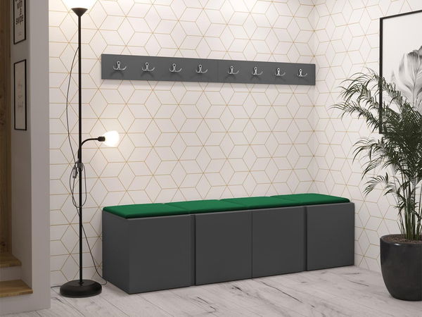skriňa na topánky x 2: šírka: 84 cm, výška: 42 cm, hĺbka: 46 cm, vešiak na oblečenie 84 x 2: šírka: 84 cm, výška: 16 cm, hĺbka: 4,6 cm, čalúnený panel Pag 42x42 x4: šírka: 42 cm, výška: 42 cm, hĺbka: 4 cm