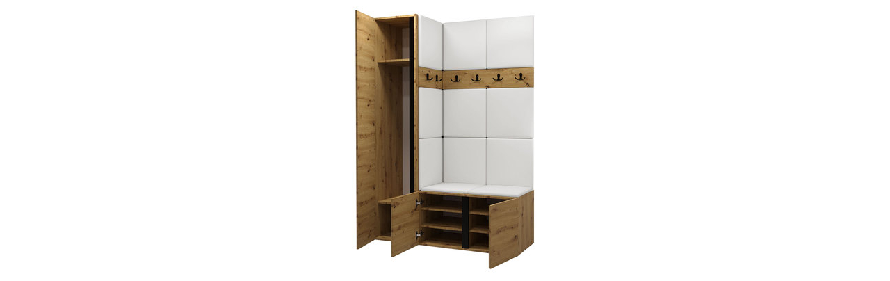 Predsieň Tovenaz X skvele doplní priestor v každom byte. Jej nespornou výhodou je zrkadlo. Toto riešenie ju robí ešte praktickejšou, pretože okrem úložného priestoru máme možnosť sa pred odchodom z domu aj rozhliadnuť. Môžete do nej schovať topánky a ich obúvanie bude mimoriadne jednoduché vďaka tomu, že ide o skrinku na topánky do predsiene s čalúnenými panelmi. Farby čiel a čalúnených panelov sú prispôsobené väčšine interiérov. Absencia úchytiek dodáva predsieni moderný charakter. Je to kus nábytku, ktorý nás víta hneď po vstupe do domu. Stojí za to zabezpečiť, aby bola predsieň bola výkladnou skriňou haly.