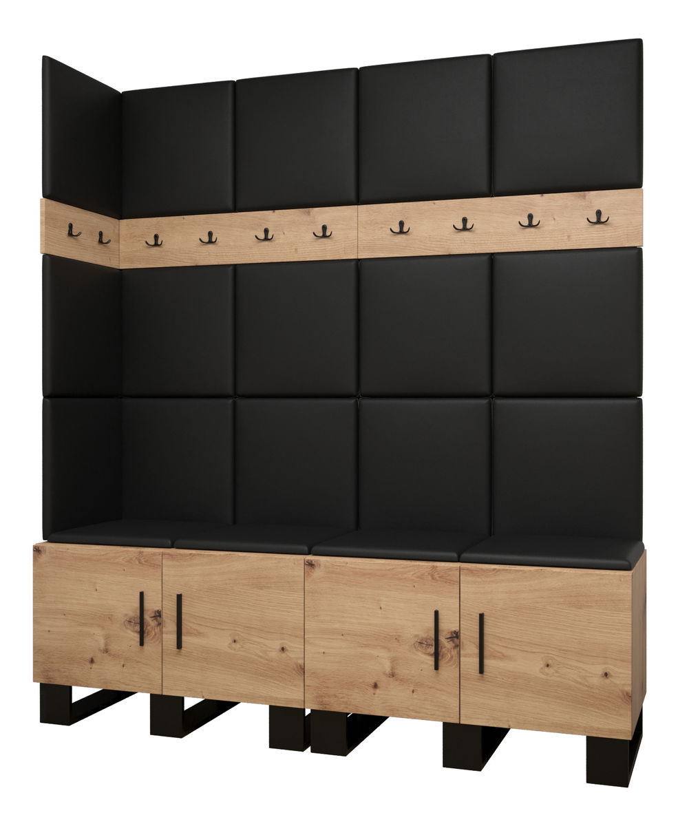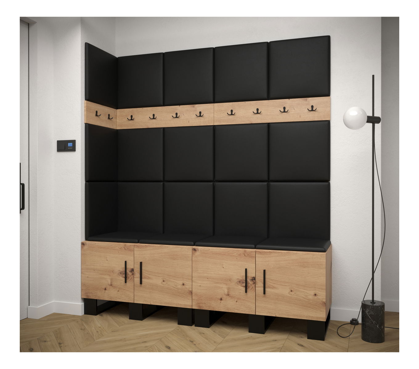 Predsieňová zostava Amanda 12 (dub artisan + čierna ekokoža)