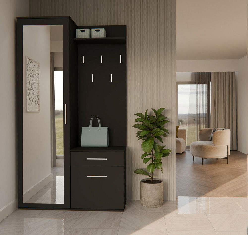 Predsieňová zostava Dialogos 1 (čierna) (so zrkadlom)