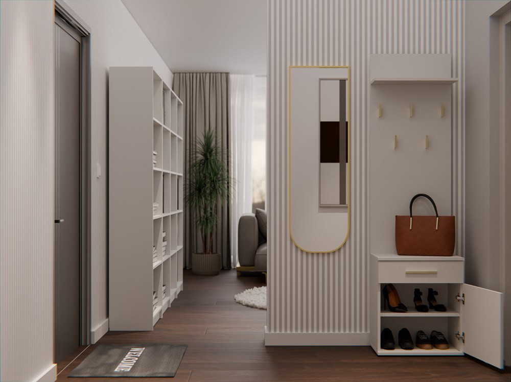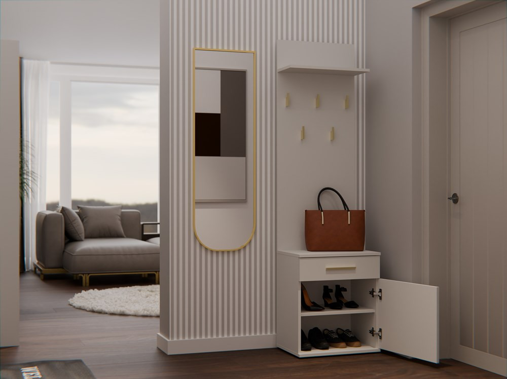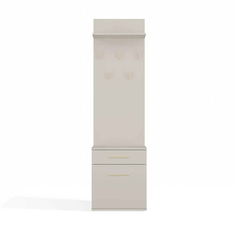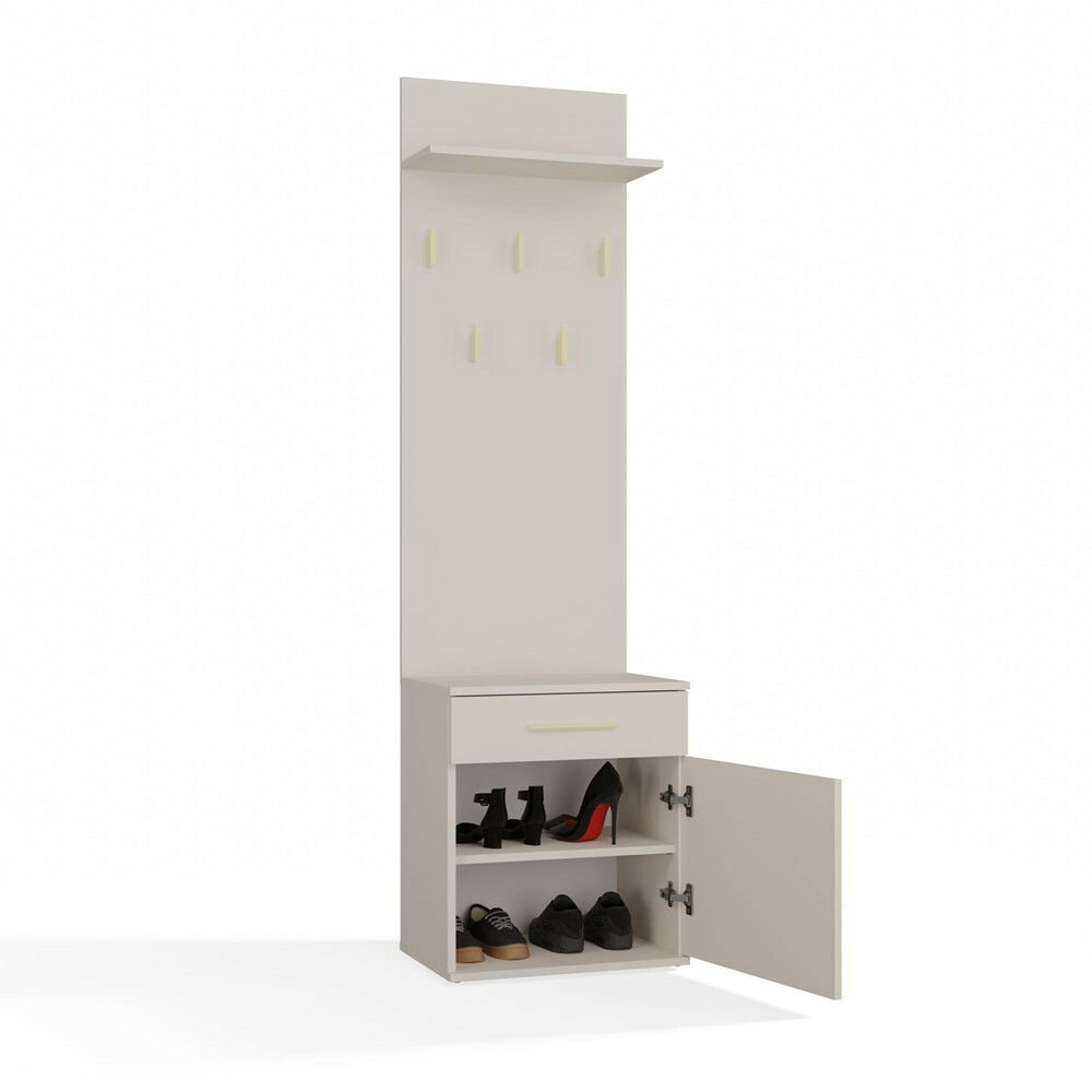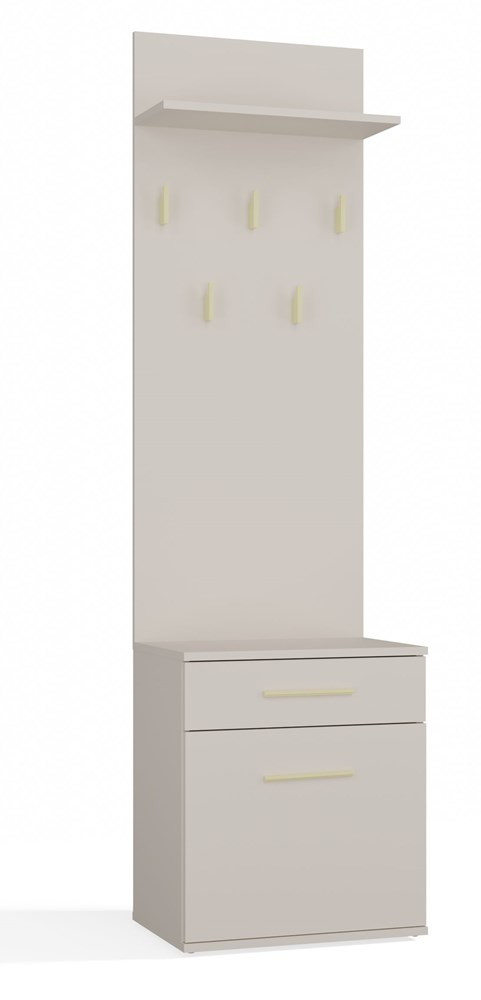 Predsieňová zostava Dialogos 2 v elegantnej farbe kašmír je ideálnym riešením pre tých, ktorí hľadajú kombináciu štýlu a funkčnosti. Tento moderný nábytok ponúka praktickú šufľu a menšiu skriňu na obuv, ako aj praktický visací vešiak s piatimi háčikmi a poličkou na doplnky. Vyrobený z kvalitnej laminovanej drevotriesky, zaručuje dlhú životnosť a jednoduchú údržbu. Svojím minimalistickým dizajnom sa hodí do každého interiéru, pričom dodáva predizbe elegantný vzhľad. Vytvorte si útulný a organizovaný priestor s touto štýlovou predsieňovou zostavou.