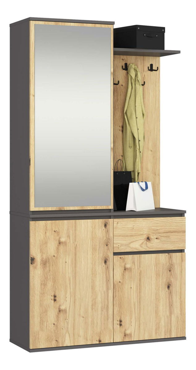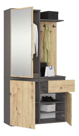 Predsieňová zostava Enteruno (sivý grafit + dub artisan) (so zrkadlom)