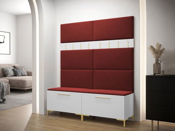 Skriňa na topánky Frunofta x2: šírka: 84 cm, výška: 52 cm, hĺbka: 46 cm, Vešiak na šaty 84 Frunofta x2 : šírka: 84 cm, výška: 16 cm, Čalúnený panel Pag 84x42: x8 šírka: 84 cm, výška: 42 cm, hĺbka: 4 cm