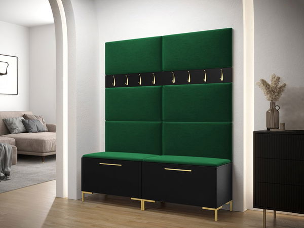 Skriňa na topánky Frunofta x2: šírka: 84 cm, výška: 52 cm, hĺbka: 46 cm, Vešiak na šaty 84 Frunofta x2 : šírka: 84 cm, výška: 16 cm, Čalúnený panel Pag 84x42: x8 šírka: 84 cm, výška: 42 cm, hĺbka: 4 cm