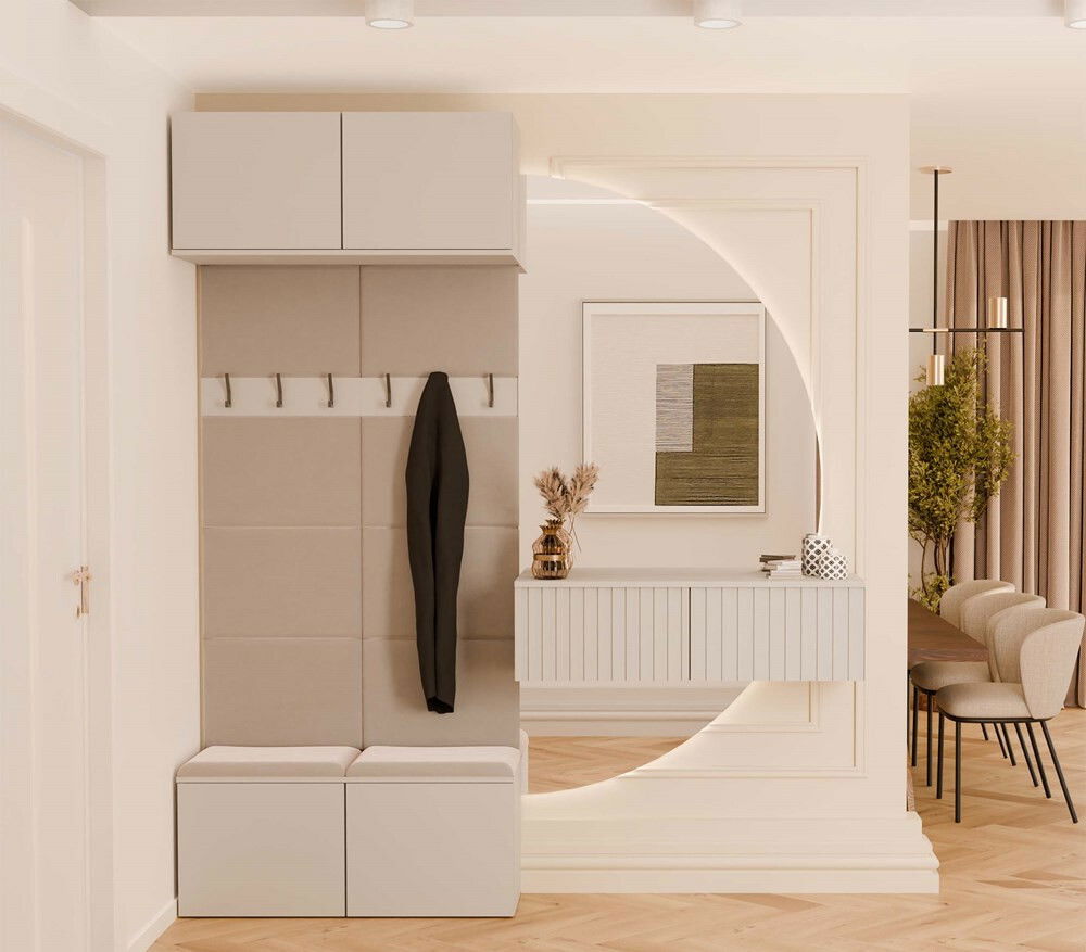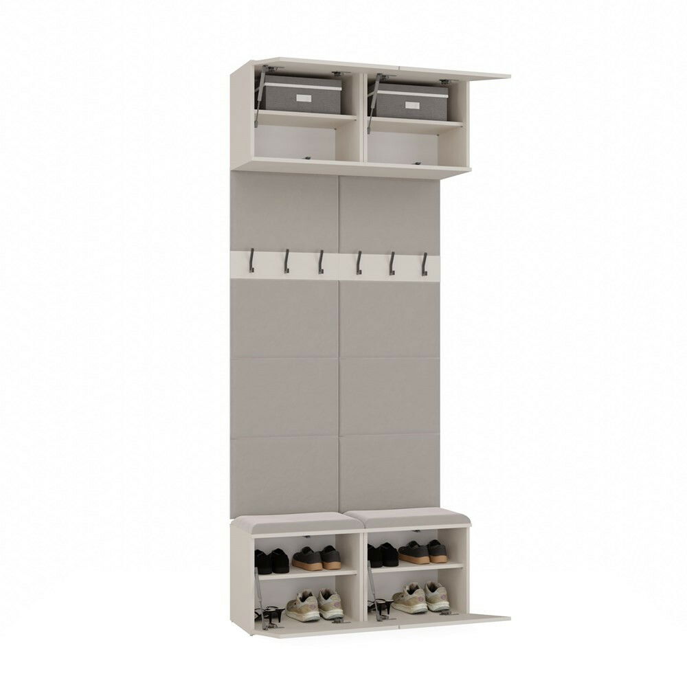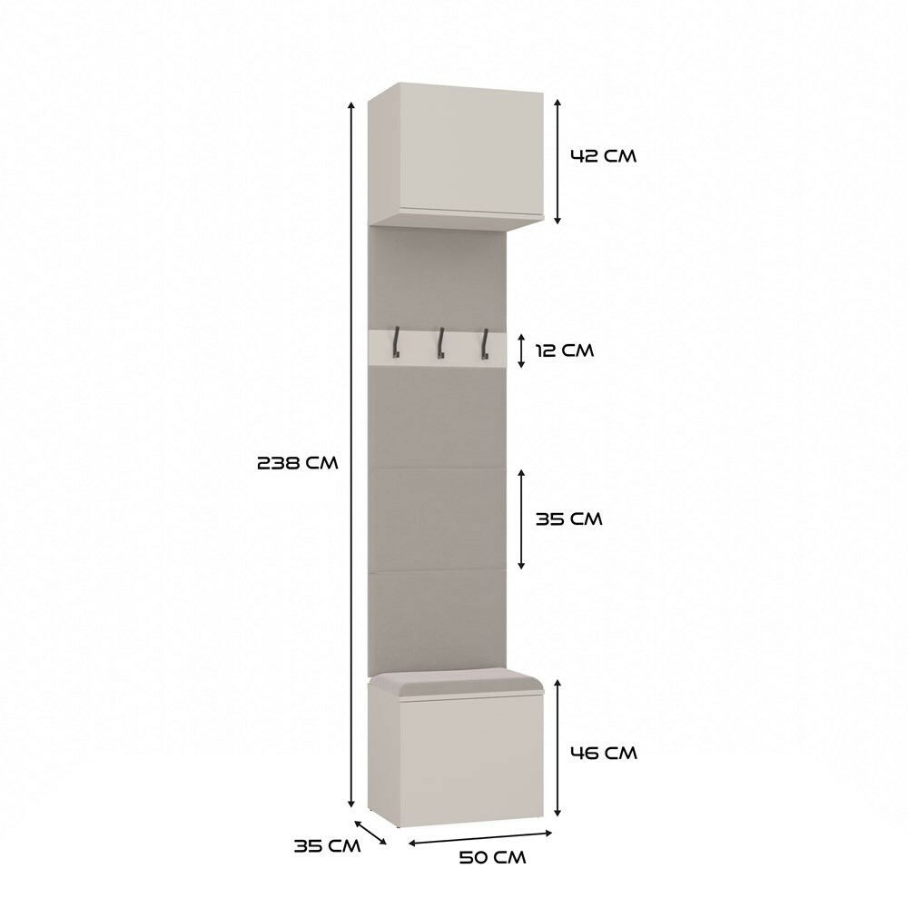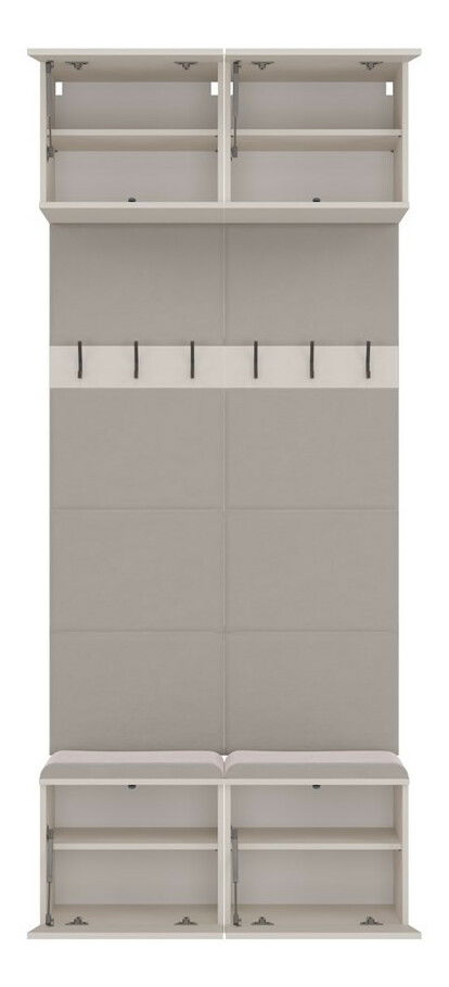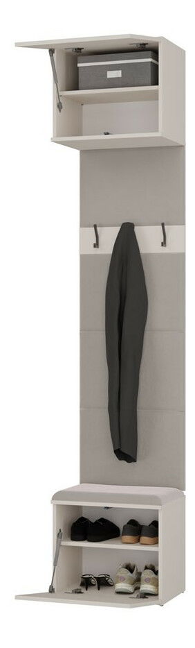 Predsieňová zostava Hablemos 1 v elegantnom kašmírovom odtieni je ideálnym riešením pre moderné interiéry, ktoré vyžadujú funkčnosť a štýlový dizajn. Tento kompaktný nábytok kombinuje praktické šatníkové panely s pohodlným sedením a úložným priestorom, čo umožňuje rýchly prístup k oblečeniu a doplnkom. S otvorenými vešiakmi a dostatočným úložným priestorom je táto zostava vhodná do menších aj priestrannejších predsiení. Jej nadčasový dizajn a teplý kašmírový tón skvele doplní akýkoľvek interiér, čím vytvorí príjemnú a usporiadanú atmosféru.