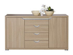 Príborník s celkovo štyrmi zásuvkami a dvoma dvierkami po oboch stranách. Nábytok z modelovej rady Smile, novinka na rok 2010 od výrobcu Black Red White.