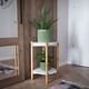 Nenápadný užitočný stolík zabezpečuje vďaka dvom poschodiam viac odkladacej plochy. Dizajn je vytvorený v škandinávskom štýle, čím zvýrazňuje jeho jednoduchosť a zároveň vzdušnosť.