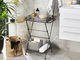 Tento odkladací stolík je skvelým príkladom dokonalej rovnováhy medzi vintage dizajnom a glamour štýlom. Je vyrobený z odolného kovu v čiernom prevedení a vďaka svojej ľahkej konštrukcii sa s ním ľahko manipuluje. Nádherné kovové spracovanie s praktickou policou ponúka úložný priestor na knihy, časopisy a iné drobnosti. Stolík sa dá zložiť a jednoducho uskladniť.