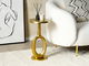 Tento dekoratívny príručný stolík v okamihu osvieži zariadenie vašej obývacej izby a dodá jej moderný retro nádych. Je vyrobený z hliníka a určite zaujme svojím jedinečným tvarom a povrchovou úpravou v zlatej farbe. Vďaka tomu, že je umiestnený na okrúhlom podstavci sa nemusíte obávať toho, že by sa mohol prevrátiť.
