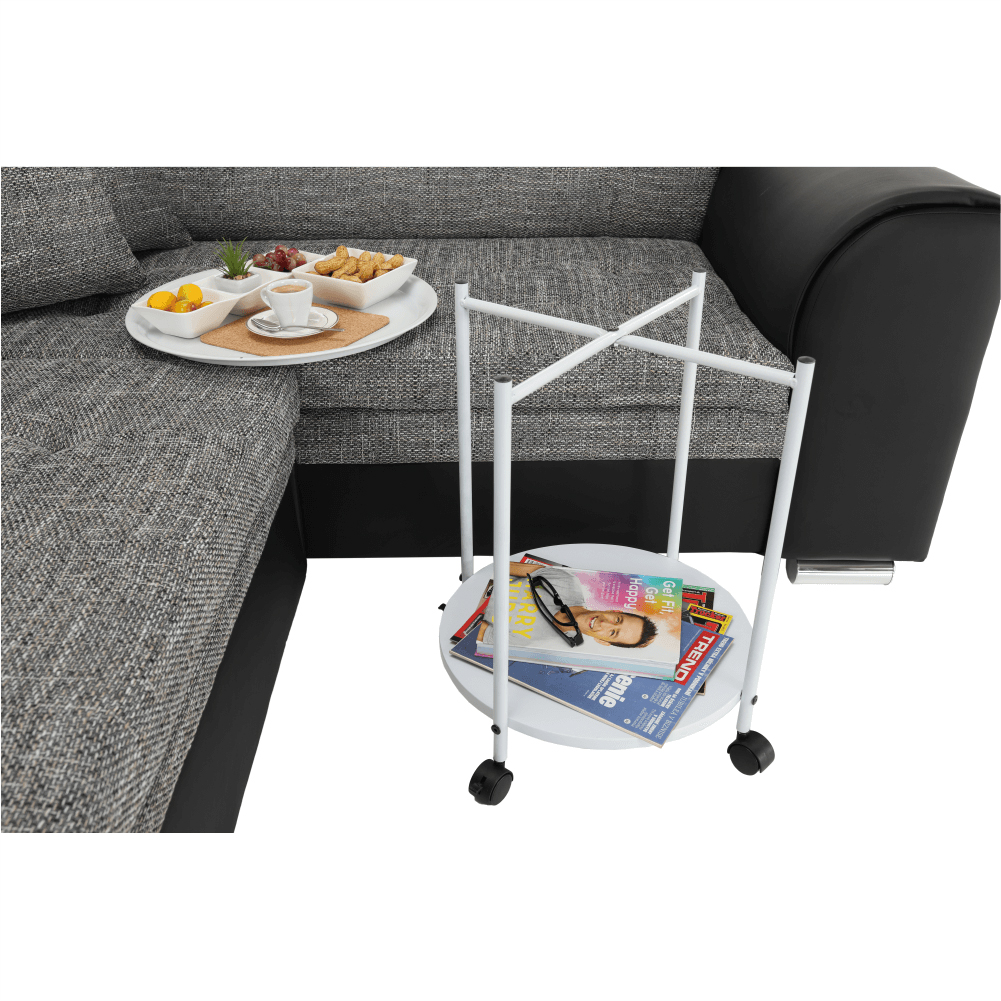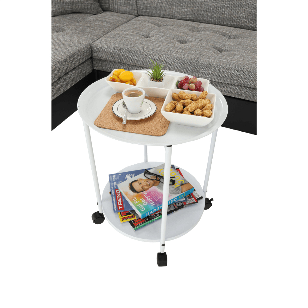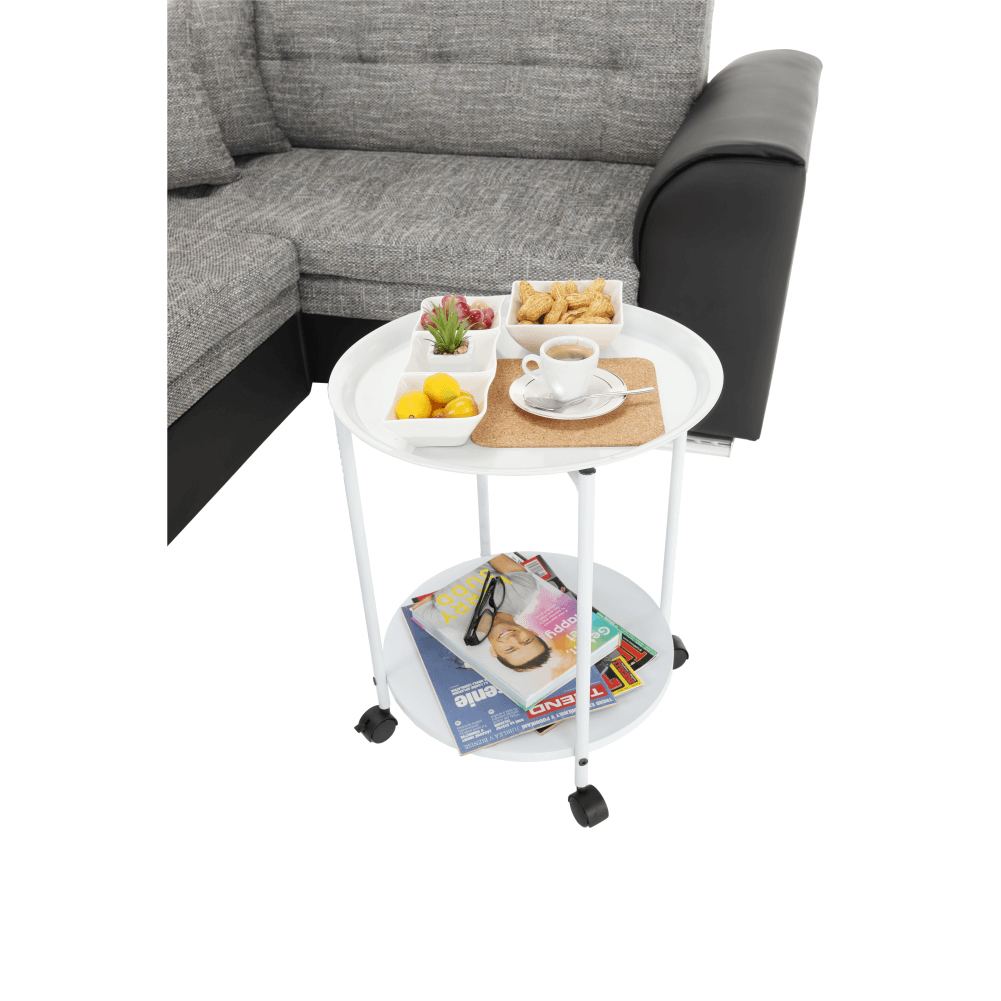Každý odkladací priestor v domácnosti naviac sa počíta. Príručný stolík na kolieskach bude veľmi užitočným pomocníkom práve pre Vás. Keďže má kolieska, môžete ho veľmi jednoducho presunúť kamkoľvek, kde ho budete najviac potrebovať. Stolík má vrchnú a spodnú odkladaciu poličku.