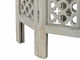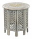 Tento ručne vyrobený príručný stolík v sebe spája krásu vintage štýlu s prvkami orientálneho dizajnu. Okrúhlu vrchnú dosku zdobí kvetinový motív, zatiaľ čo osemhranný podstavec je zdobený mriežkovaným vzorom, ktorý mu dodáva nevšedné čaro. Tento praktický a zároveň dekoratívny kúsok krásne vynikne vedľa pohovky alebo postele.