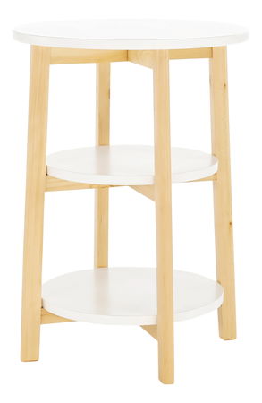Vyrobený je z MDF v bielej farbe, nohy sú z masívneho borovicového dreva v prírodnom prevedení. Stolík poskytuje dostatok úložného priestoru v podobe 3 odkladacích plôch. Pre svoje všestranné využitie je príručný stolík trendom dnešnej doby.
