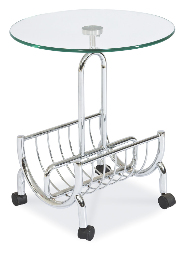 Tento príručný stolík Kim značky Signal ponúka taktiež jednoduchý dizajn. Kovová konštrukcia je v chrómovom prevedení na koliestkach a vrchná časť je z priehľadného tvrdeného skla.