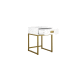 Klasický odkladací stolík dokonale doplní akúkoľvek obývaciu izbu v elegantnom, škandinávskom alebo modernom štýle. Je vyrobený z odolného MDF materiálu, vďaka čomu je trvácny a ľahko sa udržiava. Jednoduchý dizajn v klasickom bielom prevedení dopĺňajú kovové nohy v teplom odtieni zlatej farby. Vďaka praktickej zásuvke vám výborne poslúži aj ako nočný stolík.