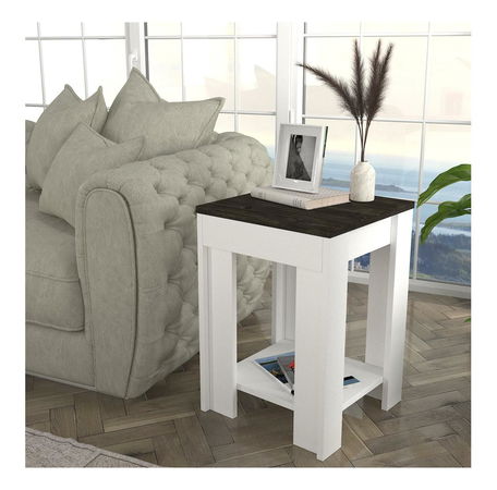Príručný stolík Nobudi (biela + tmavohnedá)