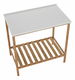 Zariaďujete si novú kúpeľňu a potrebujete využiť každý centimeter? Je vaším snom, aby sa niesla vo vzdušnom, ľahkom a jedinečnom štýle? Predstavujeme vám sektorovú zostavu Saliona. Ponúka množstvo komponentov na vytvorenie originálnej kúpelne. Vyrobená z lakovaného bambusu v prírodnej farbe. Jednoducho kombinovateľné prvky vytvoria vo vašej kúpeľni neopísateľnú atmosféru a zanechajú dokonalý dojem. Jedným z komponentov je stolík Saliona Typ 5. Ponúka úložný priestor v podobe police. Vrchný plát je z MDF s vyvýšenou zadnou stranou, ktorá nahrádza zábranu proti pádom predmetov za stôl.