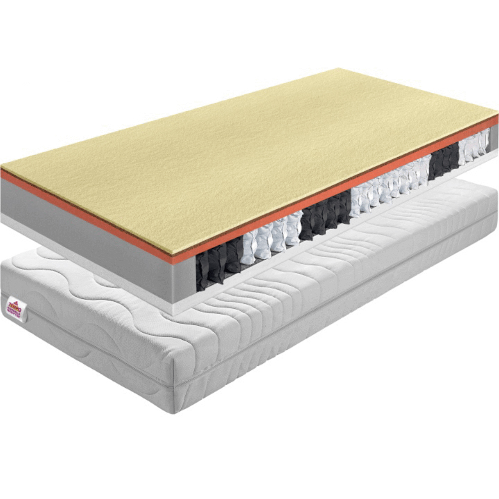 taštičkové pružiny + plsť + polyuretánová pena + latexová kokosová doska