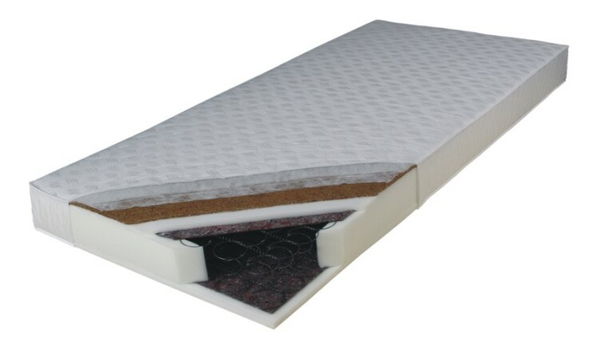 Jadro matraca tvoria kvalitné bonelové pružiny, ktoré sú obložené z oboch strán latexovou kokosovou doskou, polyuretánovou penou T25-15 mm a stlačenou plsťou. Poťah je vyrobený z čalúnnickej látky, obojstranne prešívaný protialergickým jokom 80 g/m². Matrac je tvrdý vďaka použitiu latexovej dosky.