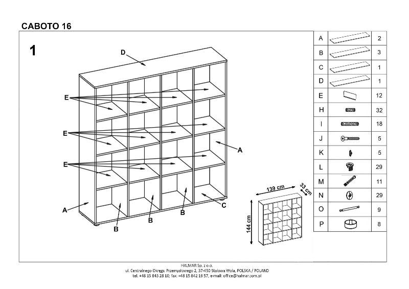 Regál Afreda 16 (biela) je vyrobený z laminovanej drevotriesky a má výšku 144 cm a hĺbku 33 cm. Tento regál sa skladá zo 16 úložných boxíkov, ktoré vám poskytujú možnosť usporiadať alebo vystaviť rôzne dekorácie, drobnosti alebo aj knihy. So zásuvkou, ktorú je možné zakúpiť z našej ponuky, môže byť regál vhodný aj do detskej izby. Regál Caboto je v neutrálnom farebnom prevedení biela, ktorá sa hodí k akémukoľvek interiéru. Jeho materiál, laminovaná doska, zaisťuje jeho pevnosť a odolnosť. Tento regál je skvelou voľbou pre tých, ktorí hľadajú elegantné a praktické riešenie pre svoje miestnosti.