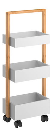 Regál Arlox (biela + bambus) s výškou 75 cm a hĺbkou 18 cm je štýlovým a praktickým riešením pre Vaše úložné potreby. S tromi priečinkami poskytuje dostatok miesta pre drobnosti a dokonale sa hodí do kúpeľne alebo spálne. Regál má kolieska, takže ho môžete ľahko premiestňovať. Je vyrobený z MDF a lakovaného bambusu s hrúbkou materiálu 9 mm. Regál je dodávaný v demonte a jeho rozmery sú 30x18x75 cm.