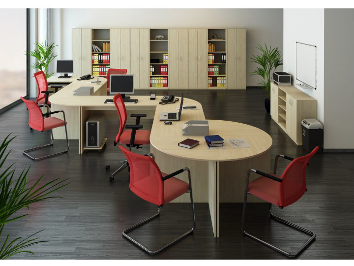 Rozmanitá sektorová zostava vhodná na zariadenie kancelárií, pracovní, školských učební, alebo zasadacích miestností. Materiál: DTD laminovaná, ABS hrany. Možnosť vybrať si z farebných prevedení buk, dub Sonoma, Bardolino tmavé a čerešňa.