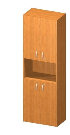 Regál Asista AS 003 čerešňa s výškou 175 cm a hĺbkou 34 cm je ideálnym doplnkom do vašej kancelárie, pracovne či zasadacej miestnosti. Tento vysoký regál je vyrobený z laminovanej DTD s hrúbkou korpusu 16 mm a v hornej aj dolnej časti má uzamykateľné dvere. V priestore za dvierkami sa nachádza jedna polica a v strede je otvorený odkladací priestor. Regál Asista AS 003 čerešňa je súčasťou rozmanitej sektorovej zostavy Asista, ktorá je vhodná na zariadenie kancelárií, pracovní, školských učební a zasadacích miestností. Materiál DTD laminovaná a ABS hrany, možnosť výberu z farebných prevedení buk, dub Sonoma, Bardolino tmavé a čerešňa. Regál sa dodáva v demonte a zámok sa nachádza na dverách.