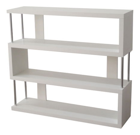 Nízky viacúčelový regál má zaujímavý dizajn a ponúka množstvo odkladacieho priestoru. Korpus je hrubý 36 mm a je v bielom farebnom prevedení. Elegantne ho dopĺňajú kovové tyčky striebornej farby.
