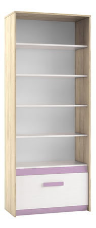 Regál s otvorenými policami a zásuvkou v dolnej časti. Tá má posilnené dno, pre zvýšenie nosnosti.