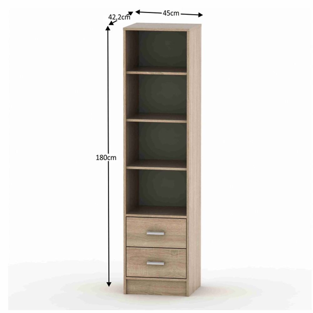 Regál Breanna BE04-011-00 s výškou 180 cm a hĺbkou 42,2 cm je ideálny nábytok pre miestnosti s obmedzeným priestorom. Jeho moderný dizajn a materiál DTD laminovaná v dub sonoma farbe sa ľahko zapadá do každého interiéru. S rozmermi 45x42,2x180 cm a hrúbkou materiálu korpusu 16 mm poskytuje dostatok miesta na ukladanie kníh, dokumentov alebo dekoratívnych predmetov. Regál je dodávaný v demonte a je jednoduchý na zostavenie. Vyberte si tento kvalitný a praktický regál pre vašu domácnosť a užite si jeho výhody vo vašom každodennom živote.