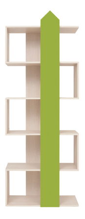 Regál REG_20_8L zo série detských izieb Strzalka renomovaného výrobcu BRW. Regál je k dispozícií vo farebnom prevedení dubového dreva s krásnym dizajnovým prvkom zelenej farby na prednej strane vo farbe šípky. Regál má zaujímavý moderný dizajn a je vyrobený z kvalitných materiálov.