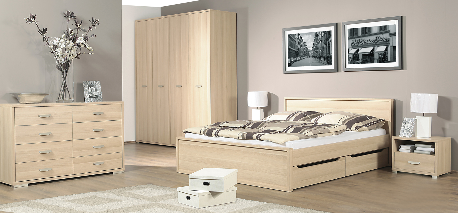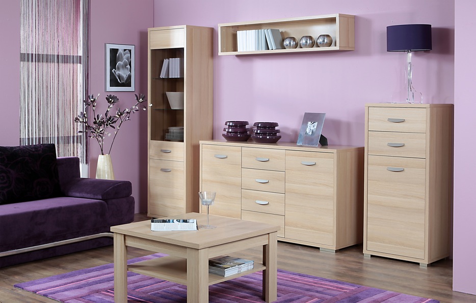 Sektorová zostava vhodná na zariadenie obývacích izieb, detských izieb aj spální sa vyznačuje množstvom nábytku, vďaka ktorému si zariadite priestor podľa Vašich predstáv. Je vyrobená z DTD lamino hrúbky 28 mm, ktoré je odolné voči poškriabaniu, vlhkosti a vysokej teplote. Univerzálne prevedenie vo farbe dreva dub nova sa hodí k akejkoľvek farbe stien. Elegantne je doplnené o striebornosivé úchyty a nožičky štvorcového tvaru.